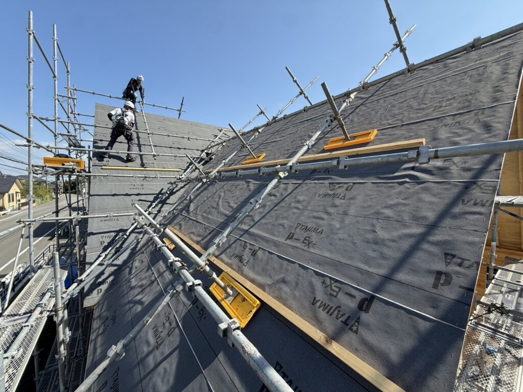見た目には「屋根の上にもうひとつ足場を組む」という不思議な光景ですが、これがあることで、職人さんはバランスを崩すことなく、安定した姿勢で作業を行うことができます。